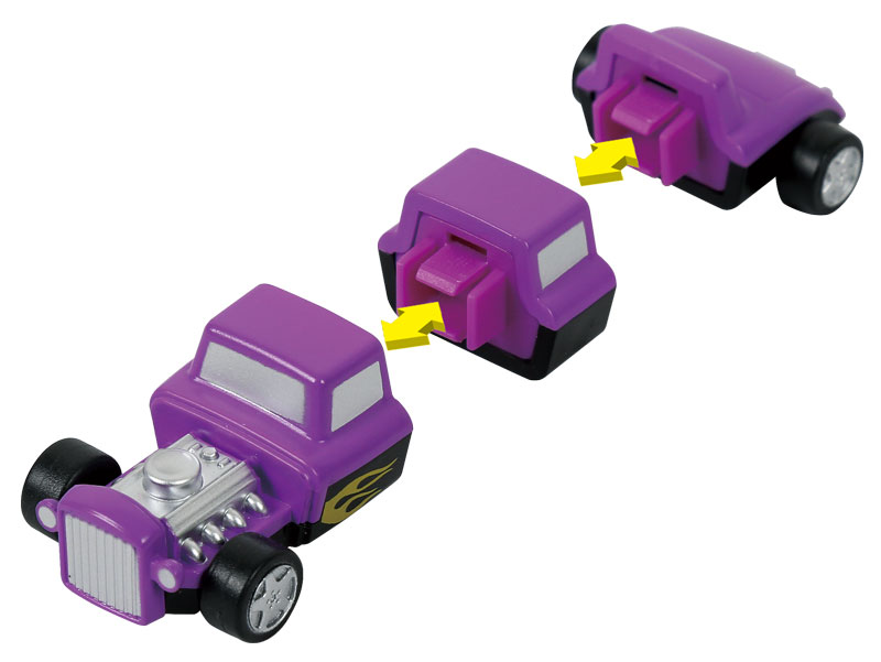 В набор входит: 27 деталей. 9 моделей транспорта (пожарная машина, космический шаттл, хот-род, полицейская машина, аэроплан, лодка, пикап, локомотив, самосвал)