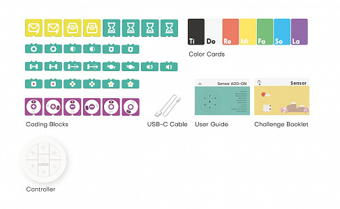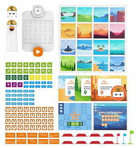 Комплект предназначен для группы из 6-9 детей от 4 лет для занятий по развитию пространственного, логического, критического, математического мышления без применения компьютера и мобильных устройств. Совместим с Lego Комплект предназначен для группы из 6-9 детей от 4 лет для занятий по развитию пространственного, логического, критического, математического мышления без применения компьютера и мобильных устройств. В процессе использования данного комплекта развивается воображение и творческое мышление в увлекательной игровой форме. Совместим с Lego. Принцип работы: В состав набора входит модуль со специальным полем, на котором располагаются управляющая башня с встроенной камерой и большая кнопка запуска программы. Программа составляется с помощью пластмассовых блоков, на которые нанесены интуитивно понятные символы (стрелки, ноты и т.п.). Блоки располагаются на специальном поле в зоне видимости камеры. Программа исполняется небольшим роботом, входящим в комплект. Этот робот перед выполнением программы располагается на специальном поле с заданием. При нажатии на кнопку старта, камера в управляющей башне считывает составленную программу с помощью камеры. После этого, с задержкой в 3 секунды, робот начинает выполнять действия по программе. Дополнительные наборы, входящие в комплект, позволяют чертить и рисовать. Используя блоки из этого набора, появляется невероятная возможность научить Вашего робота рисовать окружности разных диаметров и двигаться по различным уникальным траекториям с желаемой скоростью. Новые блоки и функция датчиков расширяют возможности кодирования, позволяя запрограммировать робота так, чтобы он мог обнаруживать препятствия, распознавать цвета и реагировать на звук. Во время игр или занятий дети смогут изменять цвет светодиодов на Контроллере, таким образом, подстраиваясь под конкретную историю. Робот – 3шт. Управляющая башня – 3 шт. Пластмассовое поле для составления программы с кнопкой запуска – 3 шт. Поле для выполнения заданий – 3шт. Блок программирования из пластика – 365 шт. Обучающий буклет – 11 шт. Карточка с примерами заданий – 18 шт. Пластмассовые разграничители для поля с заданием – 24 шт. Пластмассовые флажки для обозначения позиций на поле с заданием – 9 шт. Контроллер – 1 шт. Карточки с цветом – 7 шт. Руководство пользователя – 1шт. Магнитные ячейки – 16 шт. Блок карточек "сооружения" – 1шт. Блок карточек "животные" – 1шт. Блок карточек "цифры" – 1шт. Блок карточек "фрукты/ягоды" – 1шт. Блок карточек "алфавит" – 1шт. Блок карточек "свободная тема" – 1шт. Фломастер – 1шт. Силиконовый чехол-накладка – 3 шт.