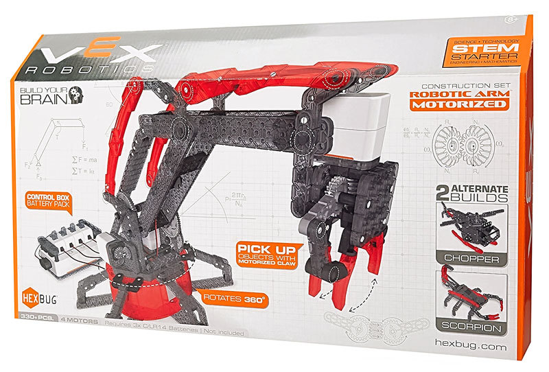 Задумывались ли вы когда-либо, как работают промышленные роботы? Вы знаете, тот тип роботов, которые работают на сборочных линиях и собирают другие сложные узлы машин и механизмов? Теперь вы можете узнать тайны работы таких современных высокотехнологичных роботов, самостоятельно построив подобного робота! Первые Манипуляторы VEX by HEXBUG - это полнофункциональный набор для сборки, созданный на основе реальных промышленных роботов-манипуляторов. Роботизированная рук, созданная с помощью этого набора способна забирать и перемещать предметы, используя четыре степени свободы и шарнирную руку с грейферным захватом. Вся конструкция может поворачиваться на 360 градусов, позволяя этому миниатюрному роботу выполнять сложные действия своего реального промышленного прототипа.