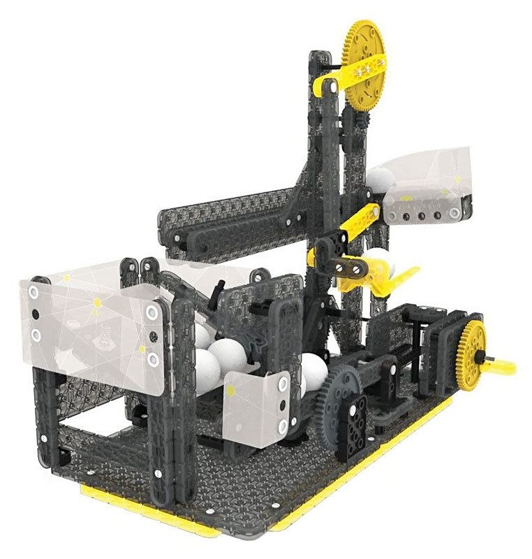 VEX by HEXBUG специализируется на вдохновении будущих поколений инженеров робототехники за счет радостного возбуждения и практического обучения с наборами конструкторов по направлениям наука, технология, инжиниринг и математика (STEM), например, этой машины вилочного подъемника шаров VEX by HEXBUG Шариковая машина. Эта машина дает важные знания по кинематике, тягам, возвратно-поступательному движению, синхронизации и последствия этих принципов для всей системы.