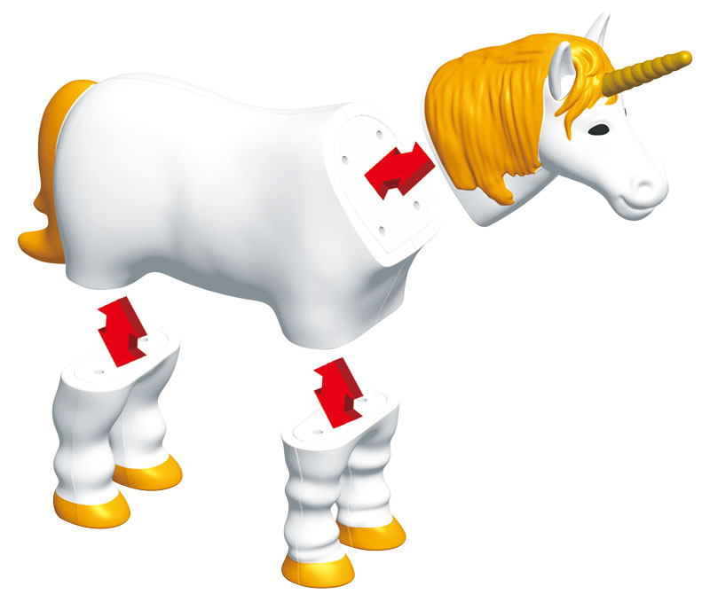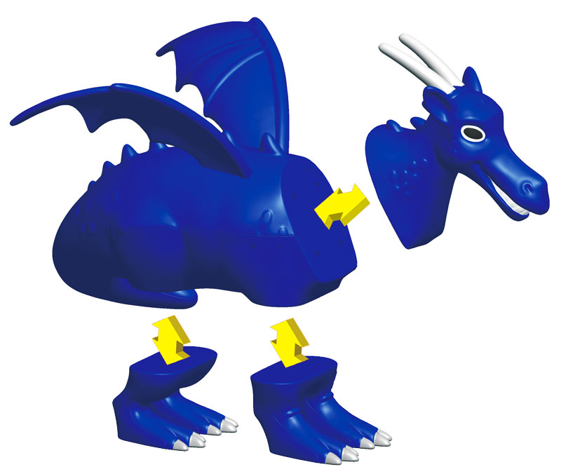 В набор входят: 15 деталей - головы, туловища, пары ног у моделей животных (крылатый лев, единорог, птица феникс, дракон)