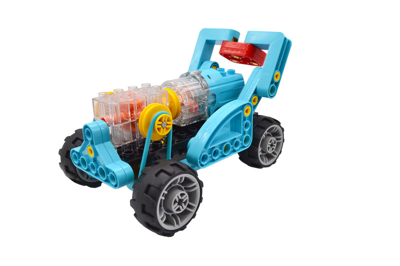 · Основные элементы конструктора: балки, шестерни, винт Архимеда, коленвал, мотор, пульт управления мотором, ремни, блоки, лопасти, оси, колеса, шины, редуктор, колонны, шкала деления, виниловые листы, винт Архимеда, коленвал, мотор, пульт управления мотором, пластины и другие компоненты