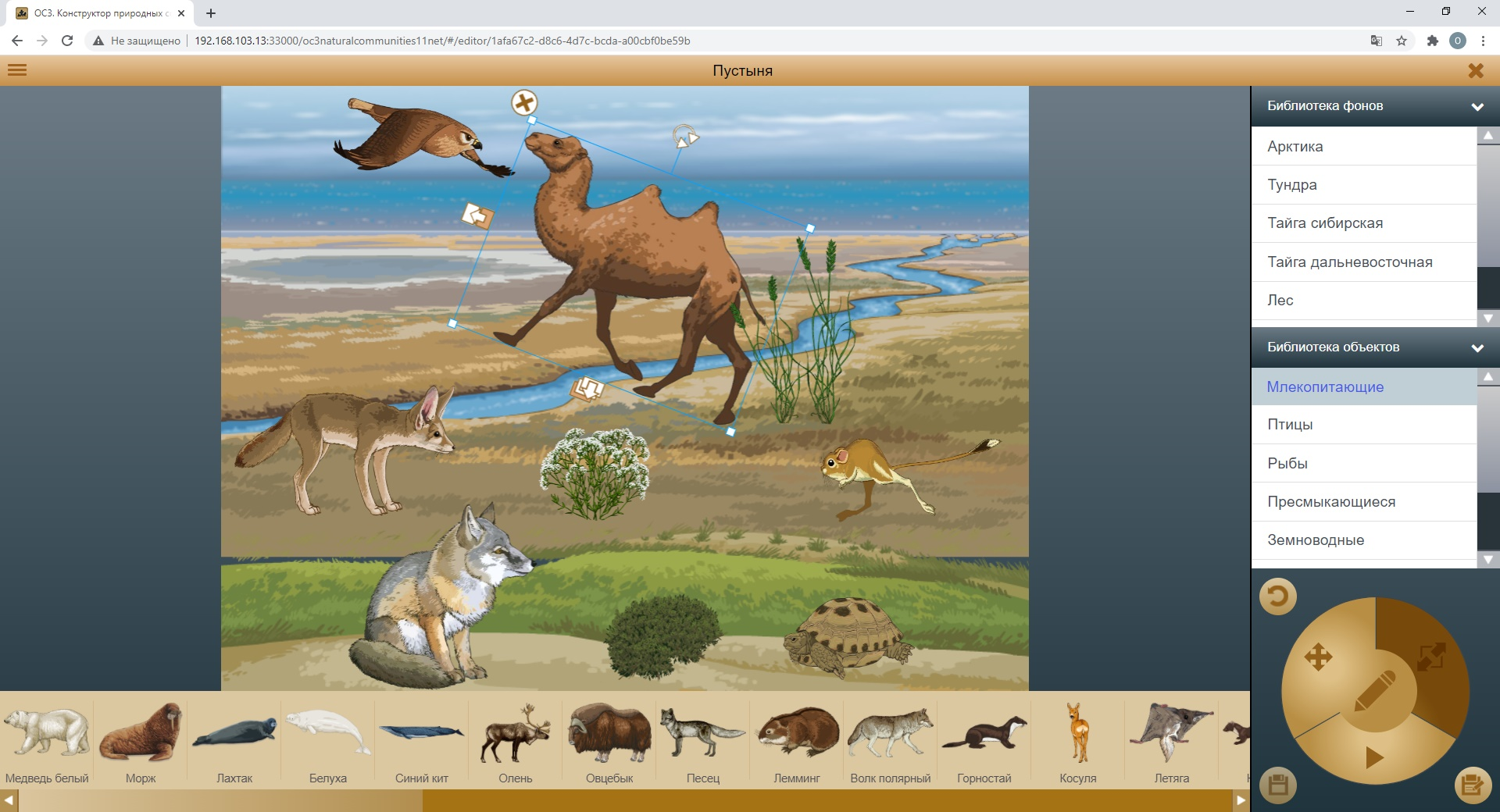 - изменение состава одновременно отображаемых представителей природных сообществ;