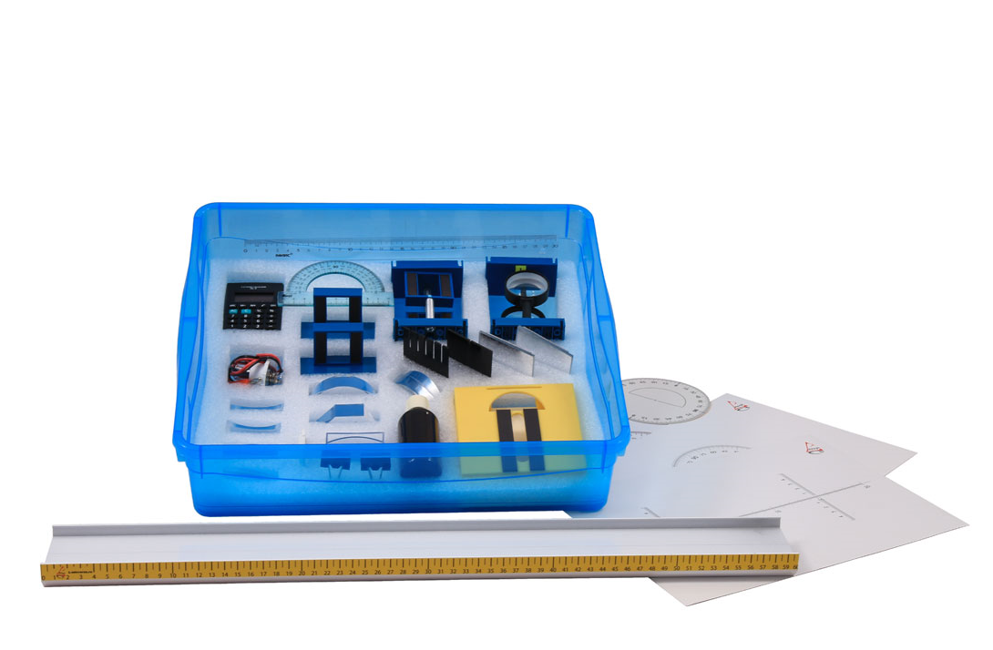 Комплект №1 • весы электронные - 1 шт. • измерительный цилиндр (мензурка), предел измерения 250 мл - 1 шт. • стакан 250 мл - 2 шт. • динамометр №1, предел измерения 1 Н (цена деления 0,02 Н) - 1 шт. • динамометр №2, предел измерения 5 Н (цена деления 0,1 Н) - 1 шт. • поваренная соль, палочка для перемешивания - 1 шт. • цилиндр стальной на нити №1, V = (25,0±0,3) см3, m = (195±2) г - 1 шт. • цилиндр алюминиевый на нити №2, V = (25,0±0,7) см3, m = (70±2) г - 1 шт. • цилиндр пластиковый на нити №3, V = (56,0±1,8) см3, m = (66±2) г (имеет шкалу вдоль образующей с ценой деления 1 мм, длина 80 мм) - 1 шт. • цилиндр алюминиевый на нити №4, V = (34,0±0,7) см3, m = (95±2) г - 1 шт. • паспорт - 1 шт. • лоток для хранения с ложементом - 1 шт. Комплект №2 • штатив лабораторный с держателями - 1 шт. • динамометр №1, предел измерения 1 Н (цена деления 0,02 Н) - 1 шт. • динамометр №2, предел измерения 5 Н (цена деления 0,1 Н) - 1 шт. • пружина 1 на планшете с миллиметровой шкалой, жёсткость (50±2) Н/м - 1 шт. • пружина 2 на планшете с миллиметровой шкалой, жёсткость (10±2) Н/м - 1 шт. • груз - 3 шт., с обозначением №1, №2, №3, массой по (100±2) г каждый • груз наборный, с обозначением №4, №5, №6, позволяющие устанавливать массу грузов: №4 массой (60±1) г, №5 массой (70±1) г, №6 массой (80±1) г • линейка и транспортир, длина линейки 300 мм с миллиметровыми делениями - 1 шт. • брусок с крючком и нитью, масса бруска m = (50±5) г - 1 шт. • направляющая, длиной 500мм. Две поверхности направляющей имеют разные коэффициенты трения бруска по направляющей: поверхность "А" - приблизительно 0,2, поверхность "Б" - приблизительно 0,6. • паспорт - 1 шт. • лоток для хранения с ложементом - 1 шт. Комплект №3 • источник питания постоянного тока (выпрямитель с входным напряжением 36÷42 ИЛИ НА ВЫБОР батарейный блок 0÷7,5 В с возможностью регулировки выходного напряжения), • вольтметр двухпредельный, предел измерения 3 В, цена деления 0,1 В; предел измерения 6 В, цена деления 0,2 В - 1 шт. • амперметр двухпредельный, предел измерения 3 А, цена деления 0,1 А; предел измерения 0,6 А, цена деления 0,02 А - 1 шт. • резистор R1, сопротивление (4,7±0,5) Ом - 1 шт. • резистор R2, сопротивление (5,7±0,6) Ом - 1 шт. • резистор R3, сопротивление (8,2±0,8) Ом - 1 шт. • набор проволочных резисторов plS (резисторы обеспечивают проведение исследования зависимости сопротивления от длины, площади поперечного сечения и удельного сопротивления проводника) - 1 шт. • лампочка, номинальное напряжение 4,8 В, сила тока 0,5 А - 1 шт. • переменный резистор (реостат), сопротивление 10 Ом - 1 шт. • соединительные провода - 10 шт. • ключ - 1 шт. • паспорт - 1 шт. • лоток для хранения с ложементом - 1 шт. Комплект №4 • источник питания постоянного тока (выпрямитель с входным напряжением 36÷42 В ИЛИ НА ВЫБОР батарейный блок 0÷7,5 В с возможностью регулировки выходного напряжения), • собирающая линза 1, фокусное расстояние F1=(100±10) мм - 1 шт. • собирающая линза 2, фокусное расстояние F2=(50±5) мм - 1 шт. • рассеивающая линза 3, фокусное расстояние F3=-(75±5) мм - 1 шт. • линейка, длина 300 мм с миллиметровыми делениями - 1 шт. • экран - 1 шт. • направляющая (оптическая скамья) - 1 шт. • соединительные провода - 2 шт. • ключ - 1 шт. • осветитель - 1 шт. • корпус осветителя - 1 шт. • диафрагма щелевая с одной щелью - 1 шт. • слайд "Модель предмета" - 1 шт. • держатель слайда "Модель предмета" - 1 шт. • держатель оптических элементов – 2 шт. • полуцилиндр, диаметр (50±5) мм, показатель преломления примерно 1,5 - 1 шт. • планшет на плотном листе с круго