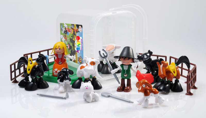 Набор «Ферма» включает 58 деталей, из которых можно построить одновременно 10 фигурок для сюжетной игры: фермера и фермершу, двух лошадей, двух коров, овечку, поросенка, собаку и кошку. Кроме того, в набор входят некоторые дополнительные детали: седла для лошадей, 3 секции заборчика, лопата, вилы, мотыга, корзина и лейка, которые можно вставить в руки персонажей. Каждая фигурка состоит из нескольких частей: туловище, голова, ноги и разные аксессуары (шляпа, меч и др.).